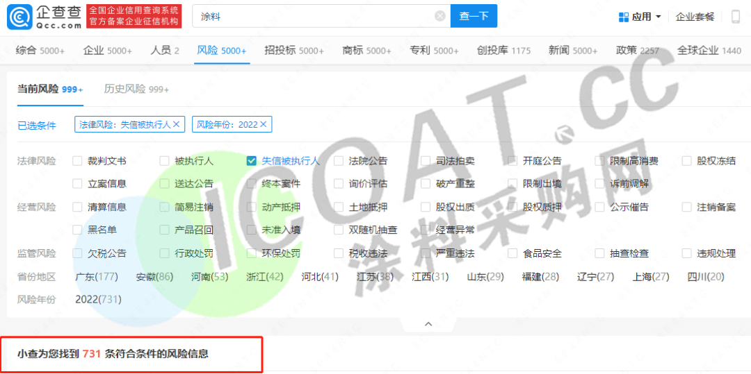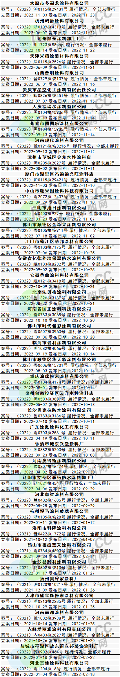 据涂料采购网不完全统计,2022年至今,涂料行业因拖欠账款或没有履行法律义务等被列入了失信被执行人名单的企业超过700家,涂料大省广东,化工重镇浙江、江苏、山东等地均有企业“中招”。