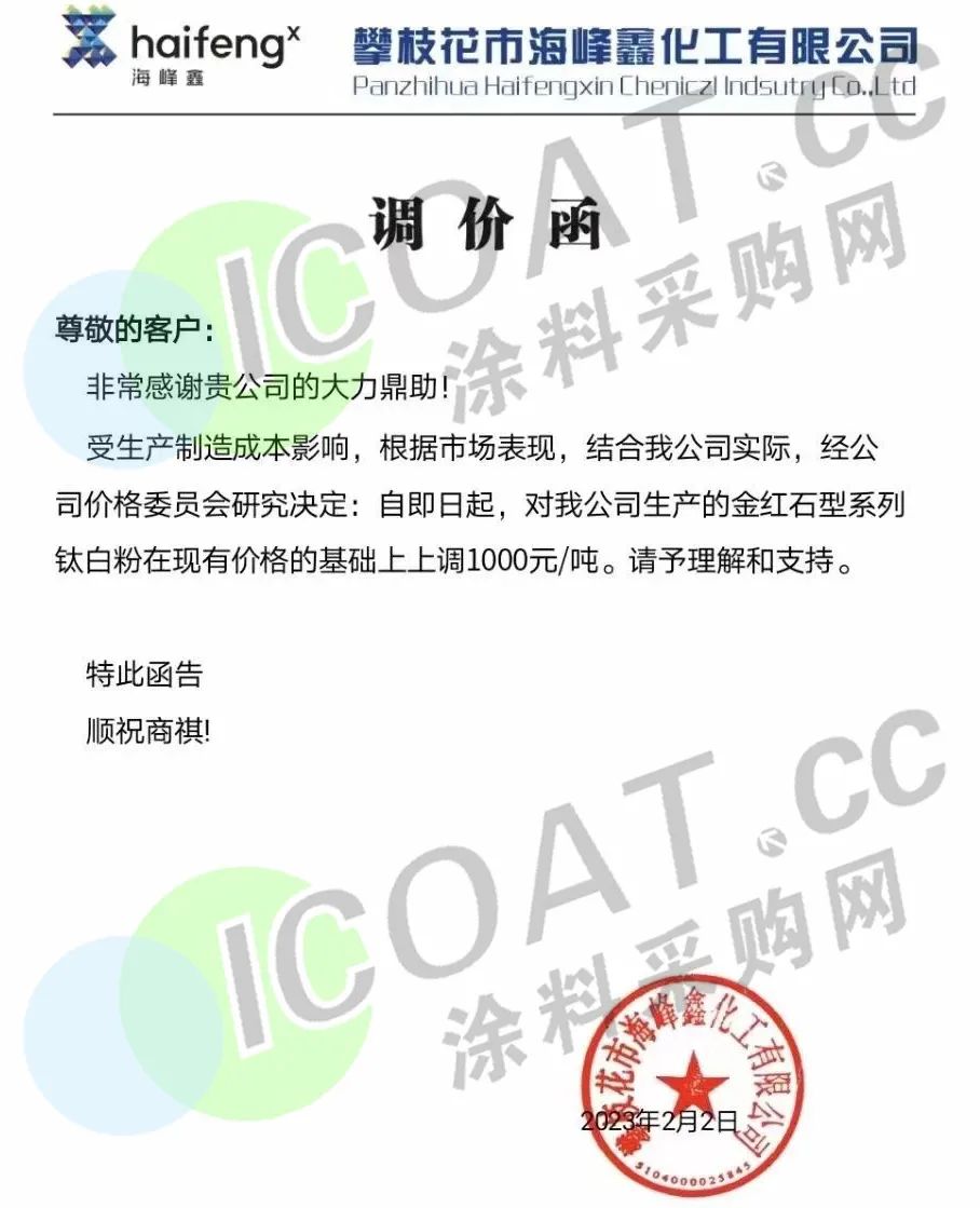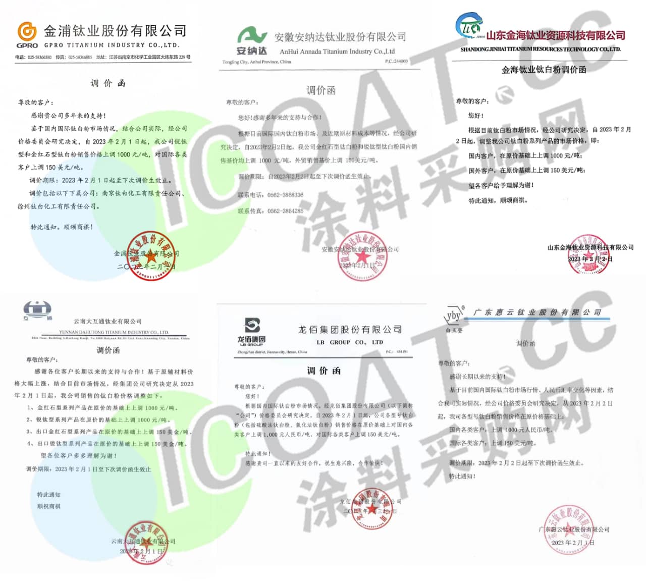 与此同时,在龙佰集团和金浦钛业、惠云钛业、安纳达等上市公司领涨之下,十几家钛白粉企业集中发函宣涨,国内普涨1000元/吨左右,海外调涨150美元/吨左右。这也让从去年6月开始持续下挫的钛白粉市场看到了曙光。