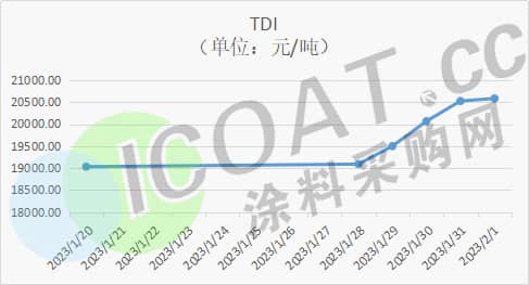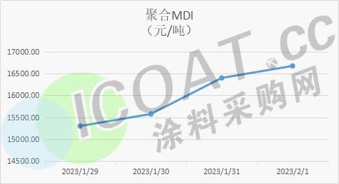 聚合MDI近日3连涨,自1月30日以来价格累计上涨1375元/吨。