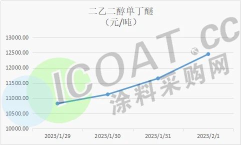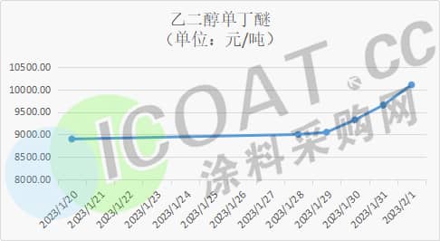 二乙二醇单丁醚近日3连涨,自1月30日以来价格累计上涨1625元/吨。
