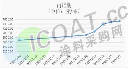 丙烯酸近日5连涨,自1月21日以来价格累计上涨833.34元/吨。