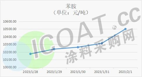 苯胺近日4连涨,自1月29日以来价格累计上涨325元/吨。