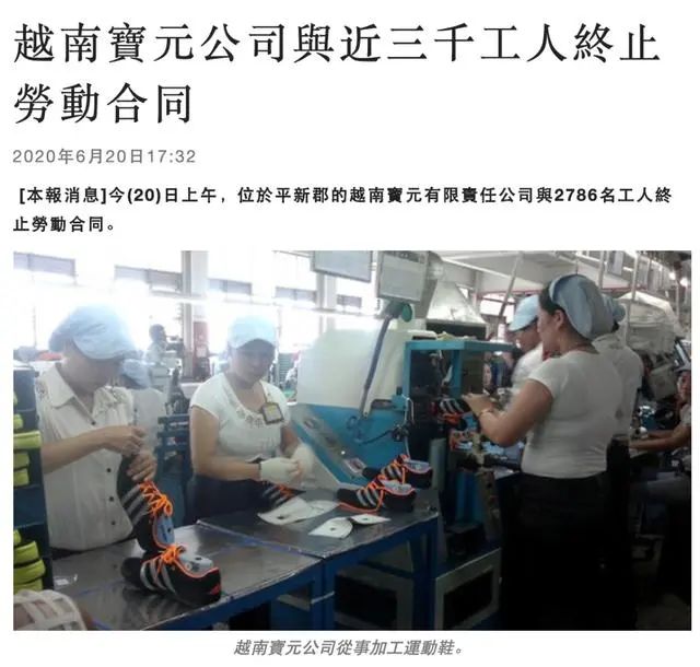 替耐克和阿迪达斯公司等国际运动品牌代工的台湾宝成集团旗下的越南宝元鞋厂因“2023年生产订单非常少”,将裁员3000名工厂员工,另有3000名员工不再续约。
