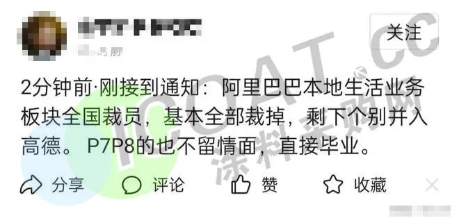 阿里巴巴旗下饿了么到店业务(原“口碑”)将与高德合并,据知情人士透露,阿里本地生活将进行新一轮裁员。某网友表示,“阿里巴巴本地生活业务板块全国裁员,基本全部裁掉,剩下个别并入高德。P7P8的也不留情面,直接毕业。”