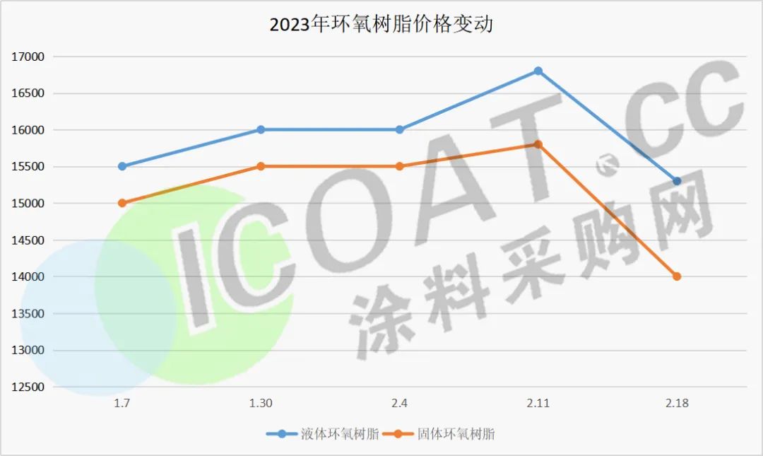 年初以来,固体环氧树脂报价上涨800元/吨左右,液体环氧树脂上涨1300元/吨左右,但2月中旬起,价格开始下滑,固体环氧周内下跌700元/吨左右,液体环氧价格下跌1000元/吨左右。其上游原材料环氧氯丙烷2月以来价格下跌394元/吨,跌幅4.35%,双酚A价格下滑316元/吨,跌幅3.08%,上游双原料的价格难以对环氧树脂行业的报价起到支持作用。
