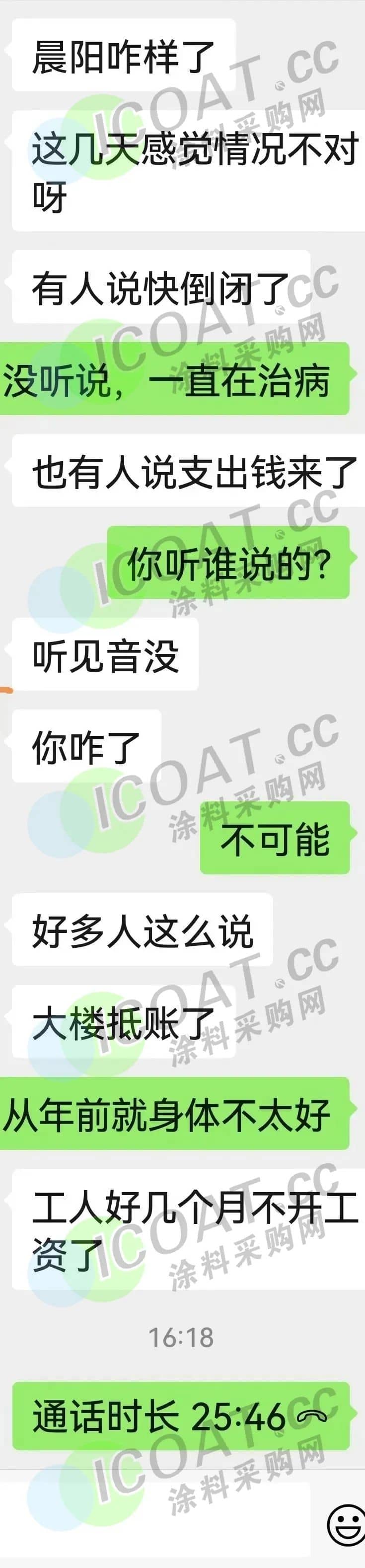 还有人表示,听到一些风声,是不是晨阳水漆已经倒闭了,工人也已经不再开工了呢?