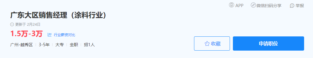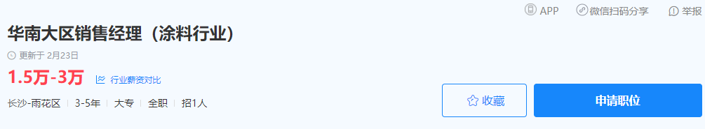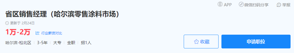 在历经劫难之后,晨阳水漆的招聘人才工作仍在如火如荼的进行中,在湖南、川渝、安徽、河北、广东、上海、吉林、辽宁到等多个地区招募销售经理、财务总监、生产采购总监、工业漆研发总经理等多个岗位,且可以看出,更新时间均为2月下旬左右,可见仍有企业的专职工作人员在跟进此事,可见企业没有停止业务,且还在扩张。