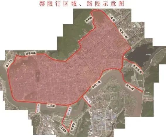 1.临海大道(开发大道—灵江二桥路段)、江滨路、丹丘路、括苍大道(丹丘路—钱暄路路段)、靖江北路、东方大道(靖江中路—开发大道)、秀野路、三峰路、开发大道所形成的闭合区域内的所有道路,不含开发大道。