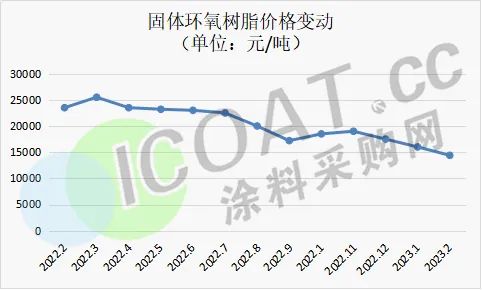 液体环氧树脂:2月内价格下跌4.38%,较历史高值下跌63%