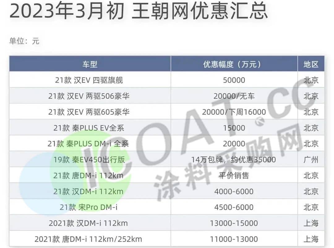 比亚迪:2021款 汉EV 四驱旗舰版车型折现金优惠5万,2021款 汉EV 506/605km现金优惠1.6万-2万;秦PLUS EV全系优惠1.5万,老款秦PLUS DM-i现车优惠2万元。秦EV 450出行版在部分地区推出“14万包牌包运营证”活动,综合优惠超3.5万元。