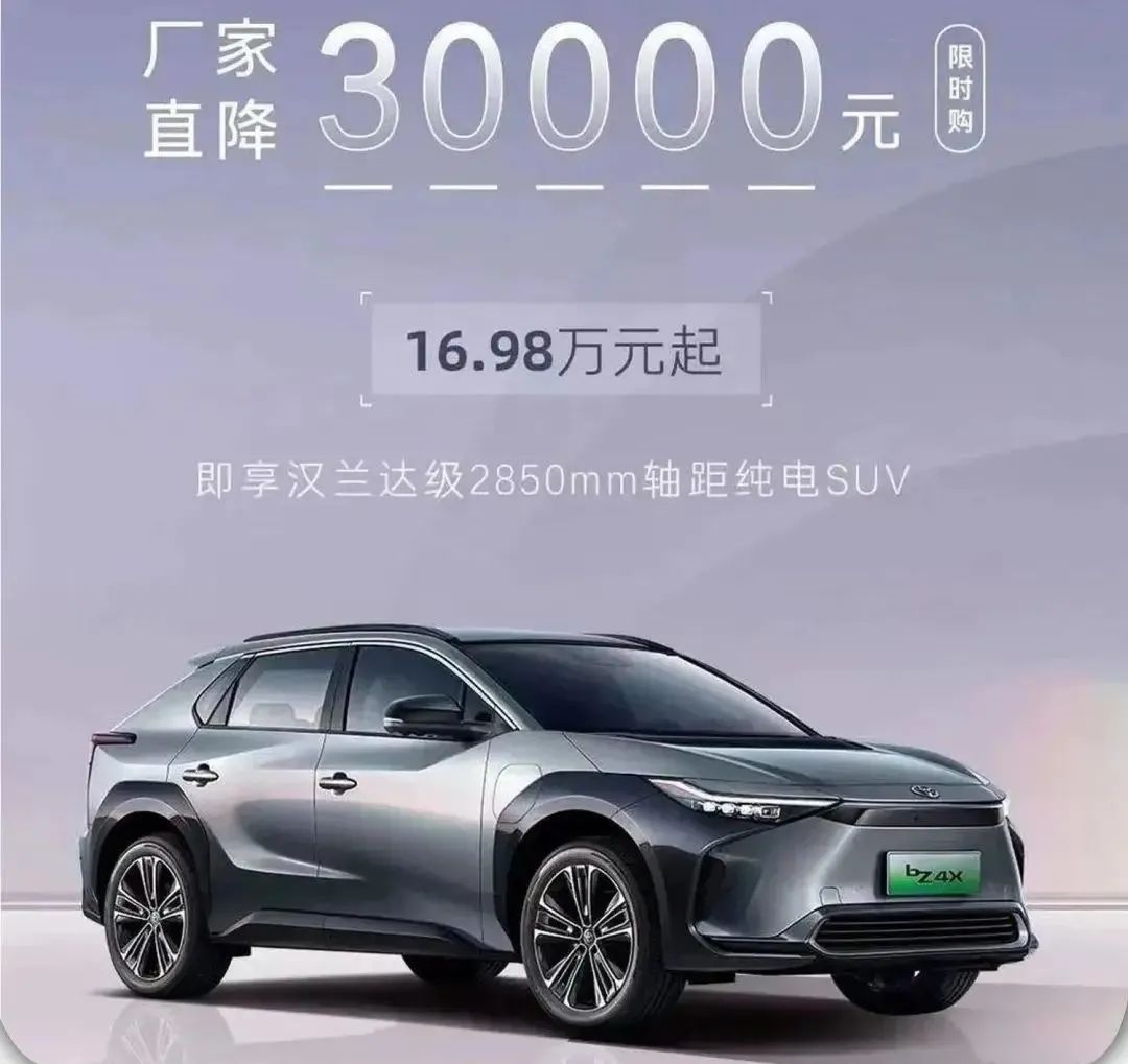 广汽丰田:售价区间为19.98万-28.78万的 bZ4X限时优惠降价3万元。