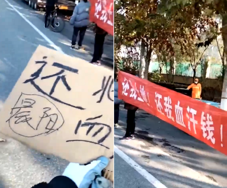 近三年来,债权人多次走上街头拉起条幅,以期造成一定的影响力,把自己的“养老钱”要回来。