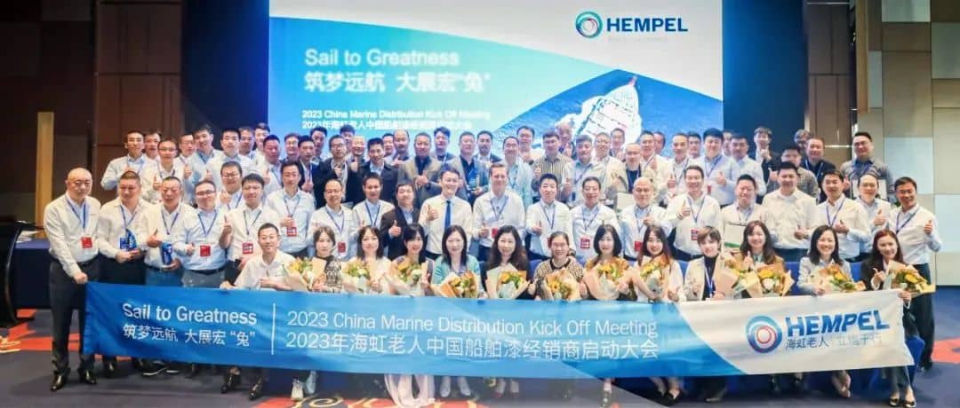 2023年海虹老人中国船舶漆经销商启动大会成功举行,多家船舶漆经销商代表与海虹老人管理层及各部门代表齐聚一堂。