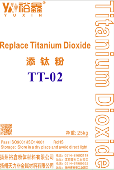 扬州裕鑫粉体新研发的一款添钛粉可以对钛白粉起着助分散的作用,减少钛白粉的使用。添钛粉的熔点高达1450℃,着色能力强,比一般的无机填料具有更强的耐腐蚀性能,及优良的耐光耐候性,不易褪色,抗粉化等物理性能优异;替代20%的钛白粉时,其白度,L、A、B 和不透明度值并没发生显著变化。