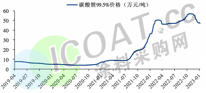 跌价行情已传导到上游锂矿产业链,锂辉石精矿下跌20美元/吨,目前价格为5000美元/吨,均价较去年底的高位价格跌幅在10%左右。