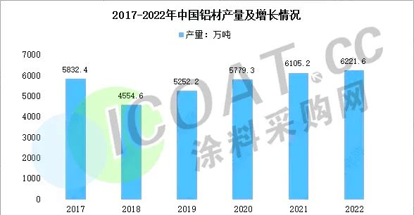 经过近30年发展,中国已成为名符其实的铝型材大国,2022年全国铝材产量为6221.6万吨,同比下降1.4%。年初受地缘政治危机因素影响,国际能源价格飙涨,欧洲冶炼厂因能源因素引发一系列减产动作。下半年因川、滇地区水电不足,限电限产导致国内电解铝运行产能高位回落。