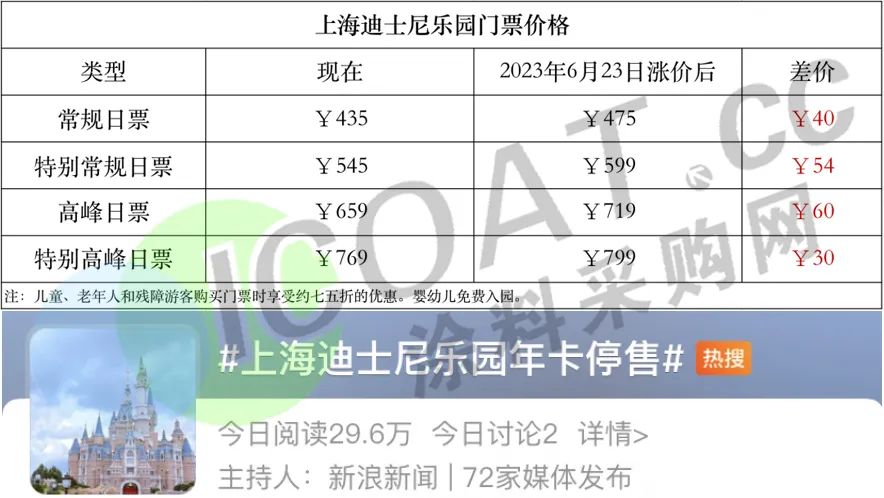 从今年6月23日起,上海迪士尼即将迎来第四次涨价,调涨普遍在30元以上。此外,自2023年3月17日上午8:00起,上海迪士尼度假区将在各销售渠道暂停发售上海迪士尼乐园年卡,被不少网友质疑这也是涨价的前奏。