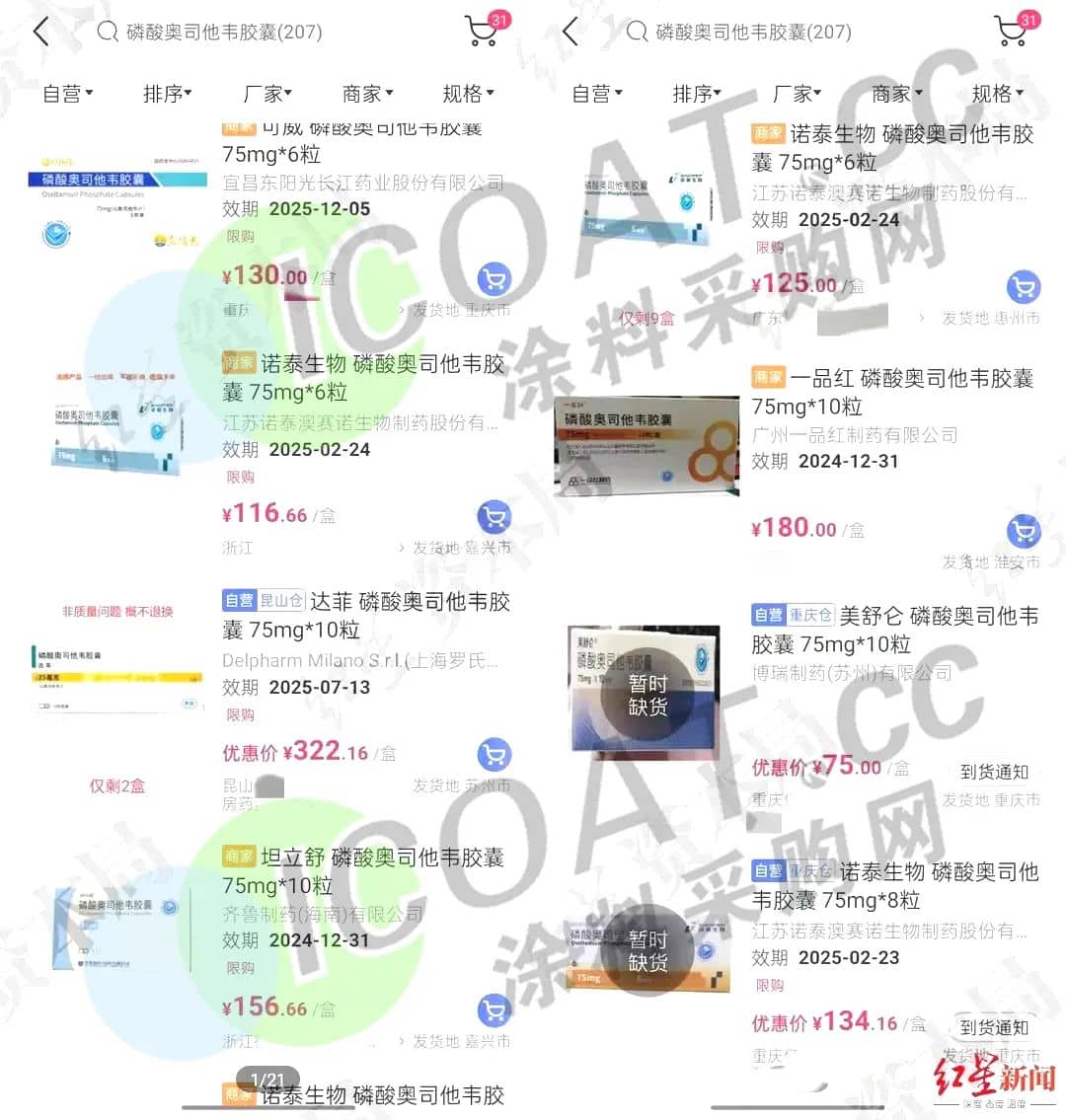 近期流感病毒阳性率呈上升趋势,28天内,流感病毒阳性率从0.7%激增到了41.6%,翻了近60倍。奥司他韦在淘宝和天猫的日平均交易量比去年同期增长了129倍,价格也翻了一倍至一盒80元左右,有的甚至能涨到100元以上。