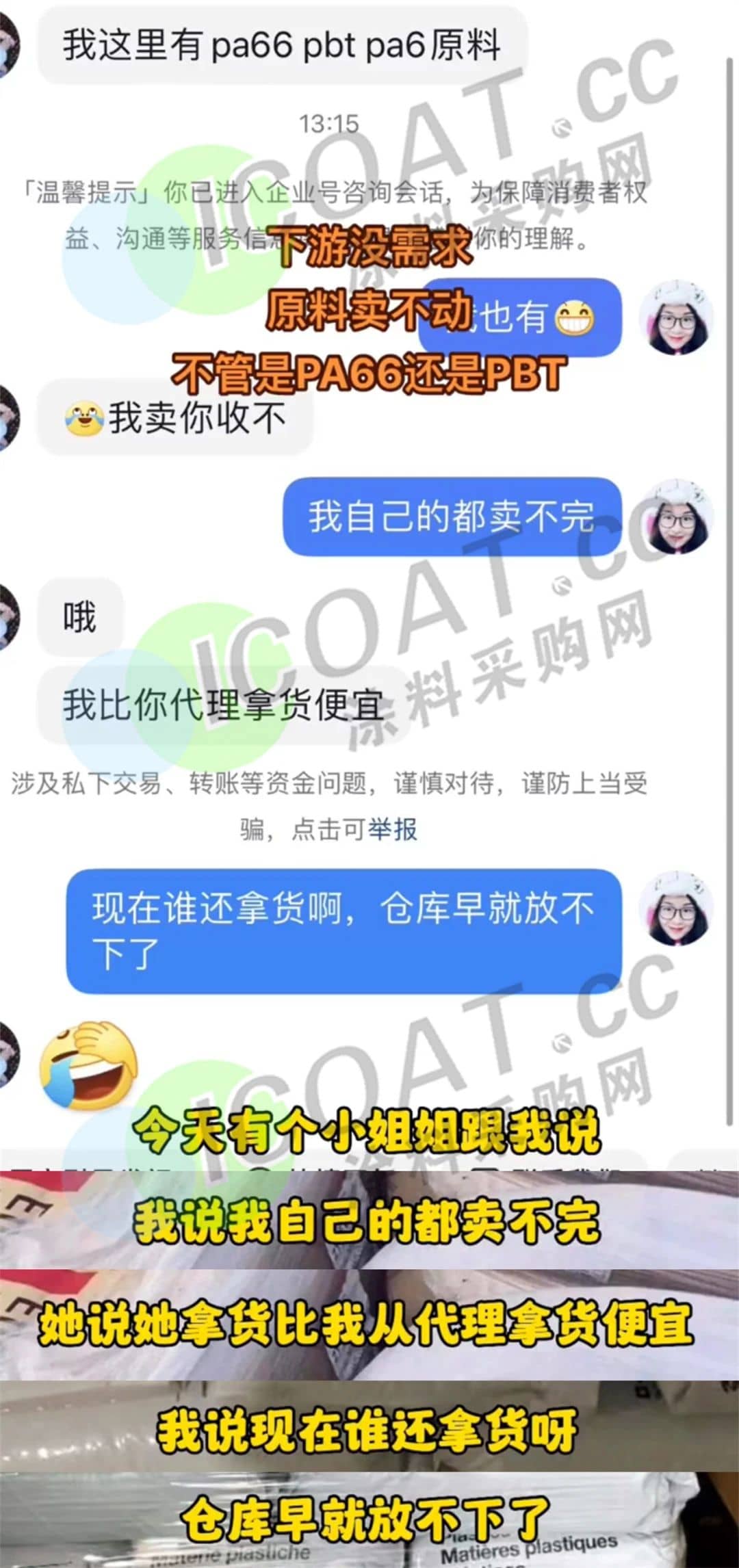 某制品厂老板表示,面对工厂没订单库存积压,本想停机出点货,但工资、电费这一切成本都让企业想停却不敢停下来,最终陷入怪圈。