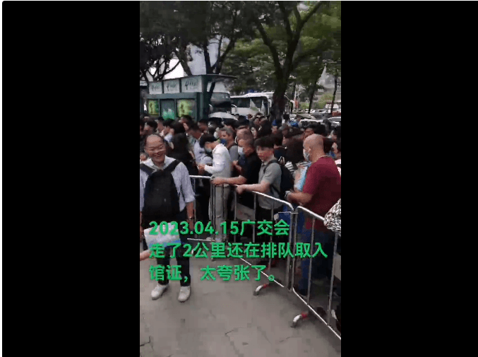 部分去了广交会的朋友反馈,首日交通状况一塌糊涂,现场办临时证的采购商大排长龙,出现了一证难求的火爆。不少网友表示,在入口差点被挤到晕倒,排队领取入馆证的已经走了2公里还没领到。