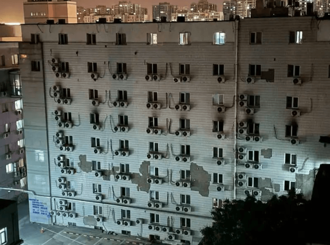 北京长峰医院住院部东楼的外墙皮有大面积脱落