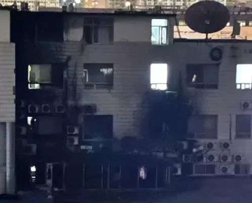 北京长峰医院住院部后侧墙体有大面积烧焦痕迹