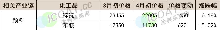颜料产业链部分原材料价格变动表(单位:元/吨)