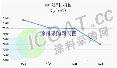 纯苯报价3连跌,累计下跌92.5元/吨。