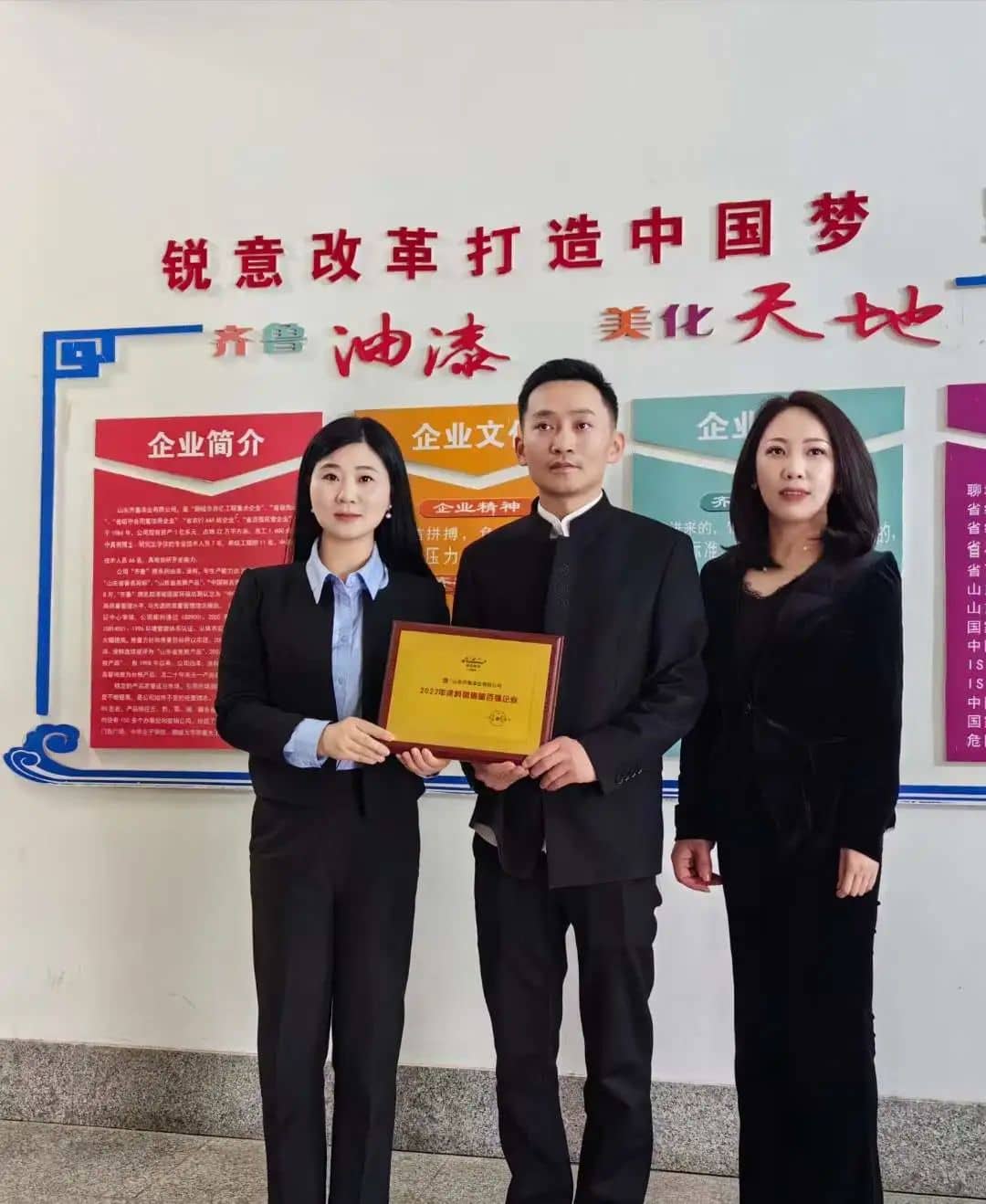 荣获涂料百强企业荣誉,齐鲁漆业坚持健康绿色发展,在不贷款的前提下,年均增长率5%,企业经营非常良性,用孙光明董事长的话说,希望自己能肩负起民族涂料的一面旗帜,民族企业之间一定要多合作,产业链布局方面,上游供应产品要优先考虑民族品牌。