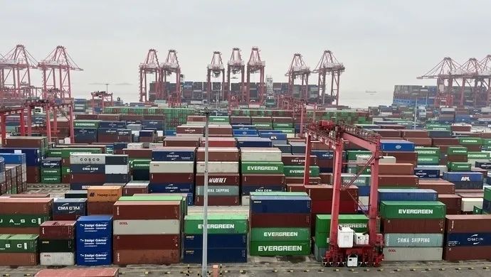 业内人士表示,洋山深水港码头如今已经成为了一个“蓄水池”,截至3月份,堆放的空箱约37万标准箱。等候在外面的集卡看似井然有序,其实全都是空车,等待着不知何时到来的订单。