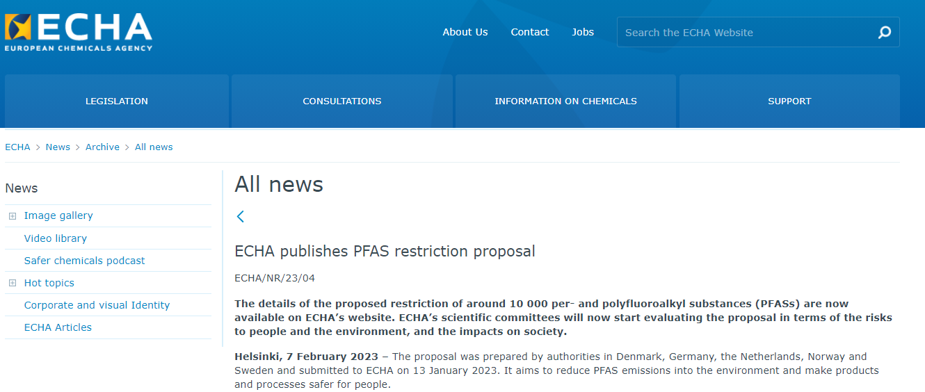 来自德国、荷兰、丹麦、瑞典和挪威五个欧盟国家的多个欧洲当局评估了有关PFAS的所有科学知识,并汇编了这些物质当前的用途,有意限制PFAS。