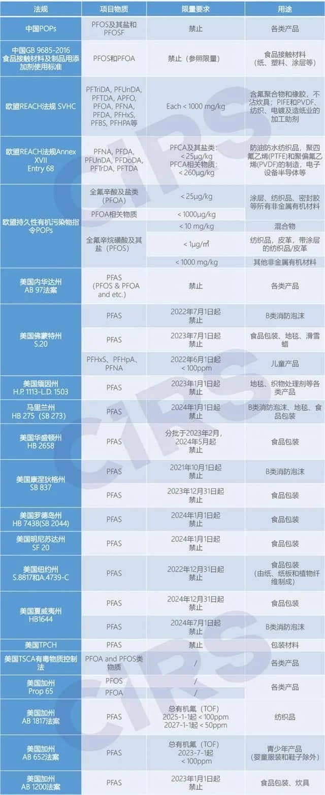 美国针对包装材料的TPCH,从2021年起将PFAS作为包装材料中管控的物质,要求不得检出。