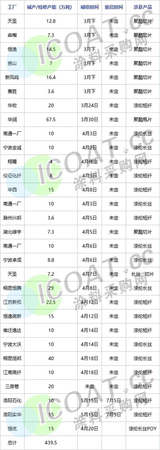 纺织市场,五一假期减产者众多,亏损的行情也让诸多企业选择了计划外减产。短纤方面实华15万吨装置计划于月中停车,计划外减产装置或将继续增加。涤纶长丝减产预计高达439.5万吨,行业整体开工负荷正在继续下调。