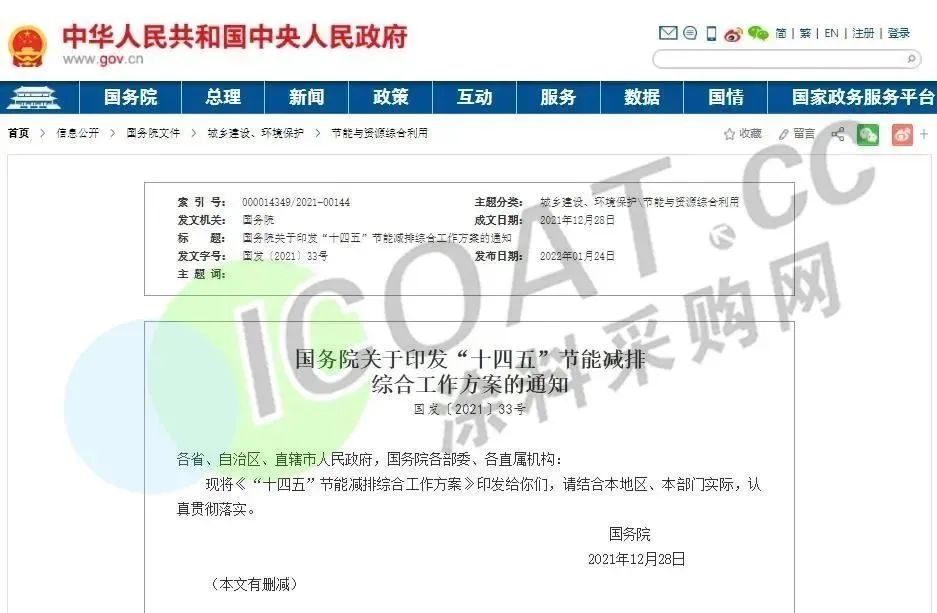 2021年12月,国务院印发《“十四五”节能减排综合工作方案》,在“挥发性有机物综合整治工程”方面,要求以工业涂装、包装印刷等行业为重点,推动使用低挥发性有机物含量的涂料。到2025年,溶剂型工业涂料降低20%。