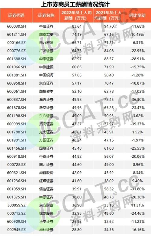 据相关数据显示,有21家券商的高管薪酬总额出现减少,占比77.8%。中信证券高管年度薪酬总额同比下滑38%。东兴证券高管年度薪酬总额同比减少 61%,中金公司、申万宏源、国元证券均分别减少 56%、54%、52%,海通证券、中泰证券、中信建投的高管年度薪酬总额也减少超过 30%。此外,20多家上市券商的2022年人均薪酬出现不同比例的下滑。