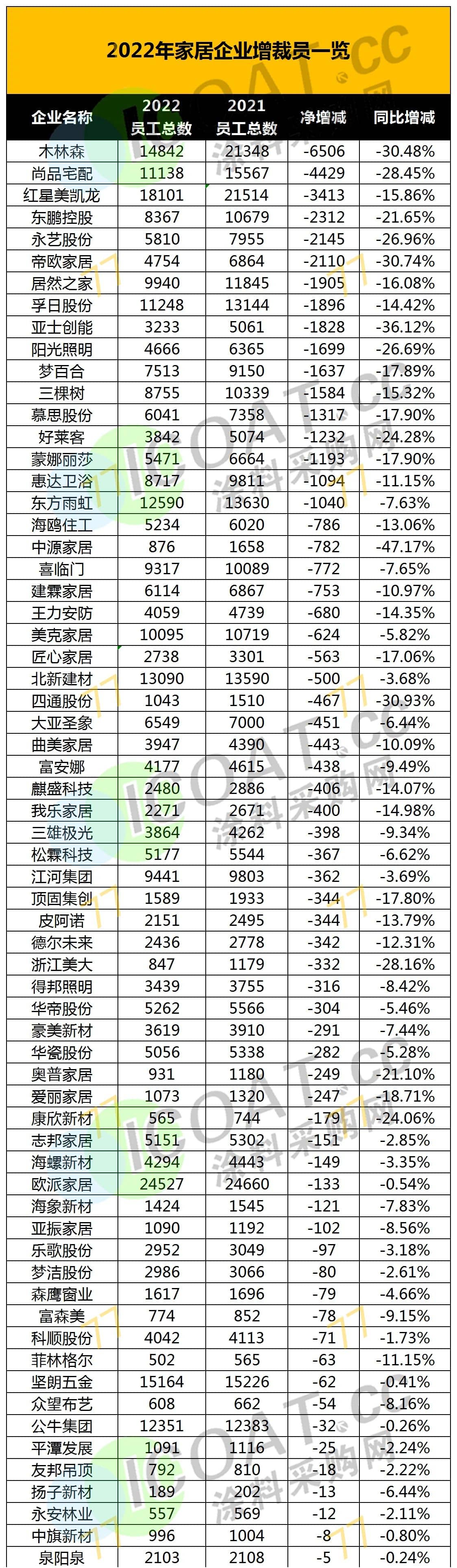 家居:家居上市公司2022年减员超5万人