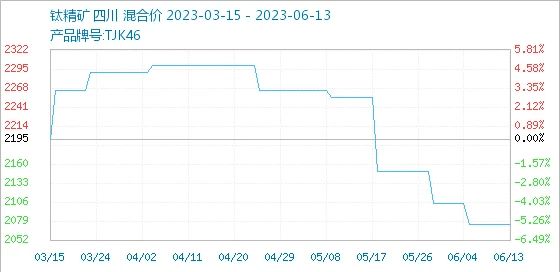 另一上游产品钛精矿,5月以来价格呈阶梯状下滑,近期再现60-70元/吨的下调,市场观望情绪加重。目前攀西地区46品位10钛精矿价格在1920-1980元/吨左右(不含税),47品位20钛精矿价格在2300-2350元/吨,坊间更是曝出低于1900元/吨(不含税)的低价传闻。