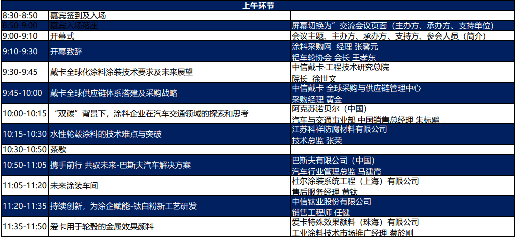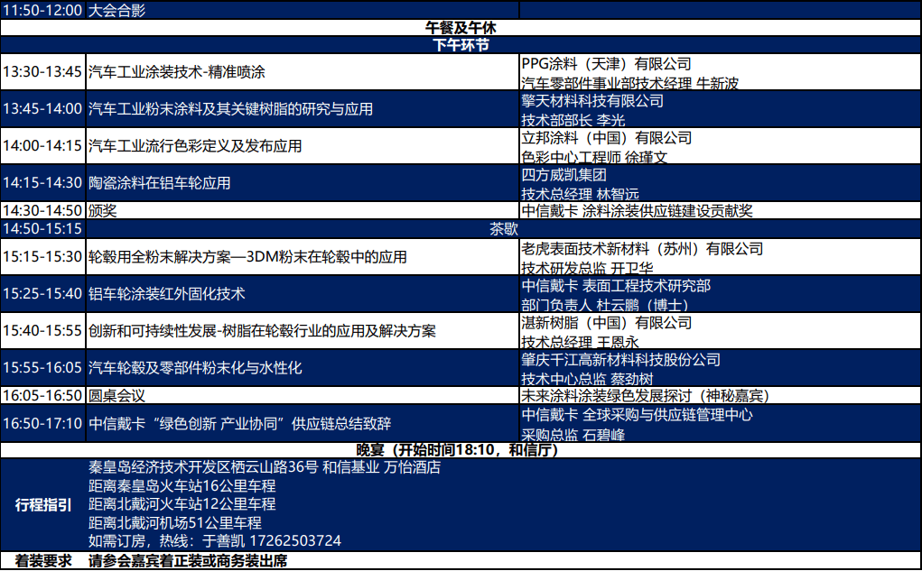 中信戴卡 第二届涂料涂装供应链交流大会议程