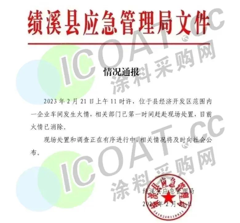 2月21日,安徽宣城市绩溪县祥云路附近一化工厂起火,起火点系一家杀虫剂生产工厂,主营业务是杀虫剂原药的稀释和罐装。