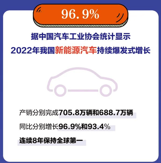 新能源汽车的发展速度相信大家有目共睹,据工信部副部长辛国斌介绍,2022年我国新能源汽车产销实现705.8万辆和688.7万辆,同比分别增长96.9%和93.4%,市场占有率达到25.6%,我国新能源汽车的产销连续8年位居世界第一。