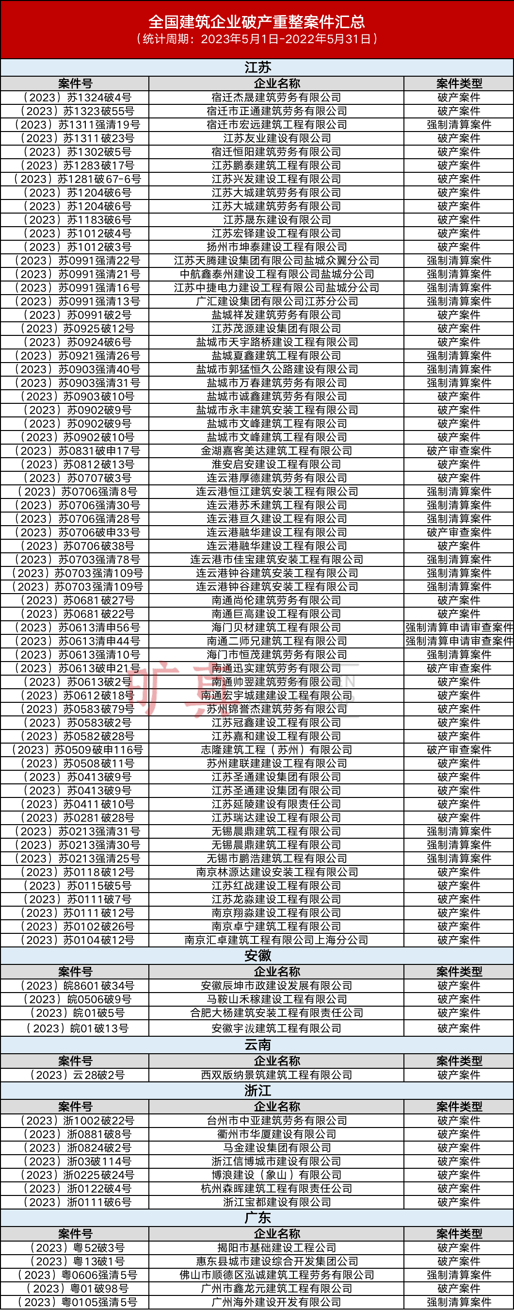南通建筑企业的的跌落神坛也揭露出,建筑行业目前的悲惨状况。据全国企业破产重整案件,仅2023年上半年数据,就有4979条建筑行业破产重整信息。