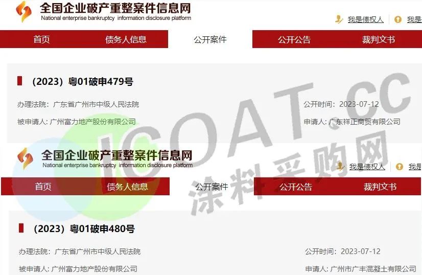近日,“千亿粤系房企”富力地产新增两则破产审查案件,申请人分别为广东祥正商贸有限公司、广州市广丰混凝土有限公司,经办法院均为广东省广州市中级人民法院。
