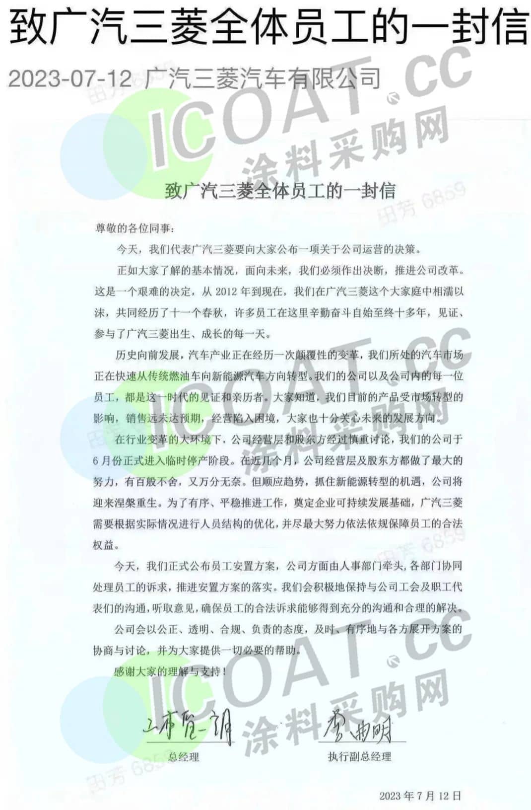 房地产行业危机重重的同时,汽车行业也没能逃脱厄运。日前,一则《致广汽三菱全体员工的一封信》引发外界关注。信中称广汽三菱目前的产品受市场转型影响,销售未达预期,经营陷入困境。公司于6月份正式进入临时停产阶段。此外,广汽三菱需要根据实际情况进行人员结构的优化。