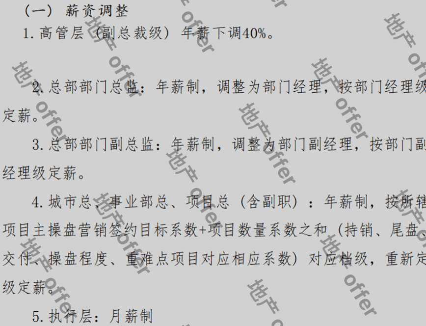 某房企发布了《关于全员调岗调级调薪的通知》,其中裁员比例不详,但是人员调动流动很大。降薪调整幅度更是大的夸张,如总监直接降为副经理、撤并城市公司、降薪5%-50%不等。
