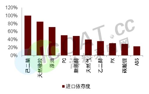 在涂料的细分领域中,也有不少原材料选用的是海外的产品。比如环氧树脂行业的帝斯曼,溶剂行业的三菱、三井;消泡剂行业的巴斯夫、日本花王;固化剂行业的西卡、威士伯;润湿剂行业的杜邦、3M;填料行业的瓦克、罗地亚、德固赛;钛白粉行业的科慕、亨斯迈、康诺斯;颜料行业的拜耳、朗盛等。因为具有很多的技术壁垒,国内的原材料产品性能完全达不到进口产品的效果,很难在国内市场中找到替代品。