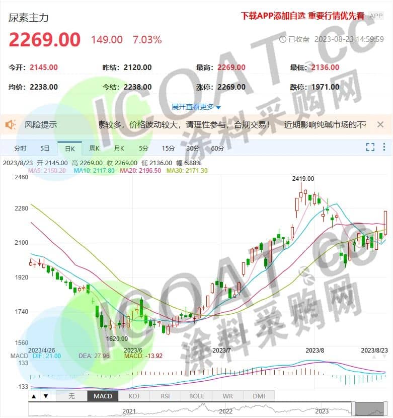 山西地区是除内蒙古以外国内尿素产量最大的地区,其尿素年产能为867万吨,约占尿素总产能的12%,其中晋城尿素年产能占山西的65%。受供应端消息提振,尿素期货强势上涨。截至23日下午收盘,尿素期货2310、2311、2312、2401和2402合约均触及涨停,尿素主力合约涨7.03%至2269元/吨。