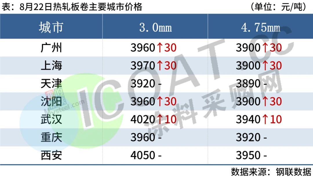 热轧板卷市场,全国24个主要城市4.75mm热轧板卷均价3955元/吨,较上个交易上涨7元/吨。