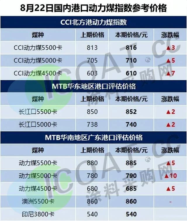 近期陕西延安、山西太原、山西晋城等多地煤矿出现事故,导致行业安全检查趋严,多家煤矿被迫停产整顿检修,复产时间待定。市场停产致使供应减少,价格上涨。国内焦煤期货主力合计盘中一度大涨超6%,这已是近来连续第5日上涨,最高累计上涨逾14%;焦炭价格同样连涨5日,动力煤港口价格如下。