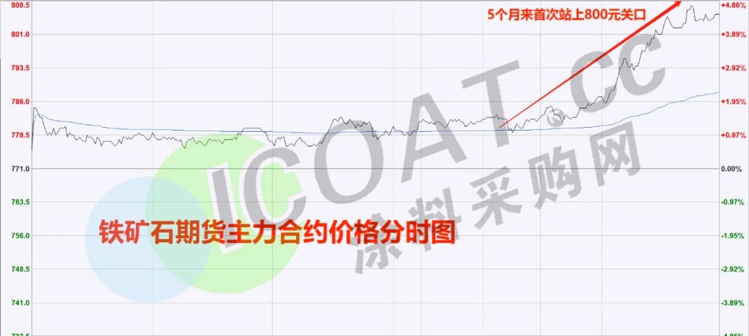 再度站上800元/吨关口,铁矿石迎来五连阳,8月22日消息,铁矿石主力合约时隔五个月再度站上800元/吨关口,自8月16日后迎来五连阳,触及3月16日以来新高807.5元。铁矿石主力期价最终收盘上涨4.47%,收报805.5元。