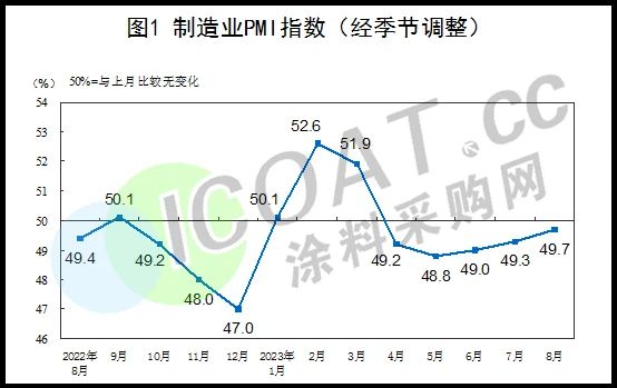 8月份,制造业采购经理指数(PMI)为49.7%,比上月上升0.4个百分点;新订单指数为50.2%,比上月上升0.7个百分点,表明制造业市场需求有所改善,制造业景气水平进一步提升。